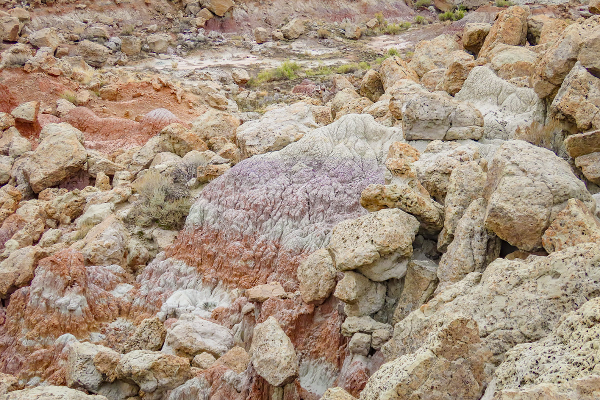 10/14/2025: Hiked Gooseberry Badlands today. The overcast skies seemed to accentuate the rock colors, especially the more subtle purple rock layers. The last photo was taken on the way home in Wind River Canyon.