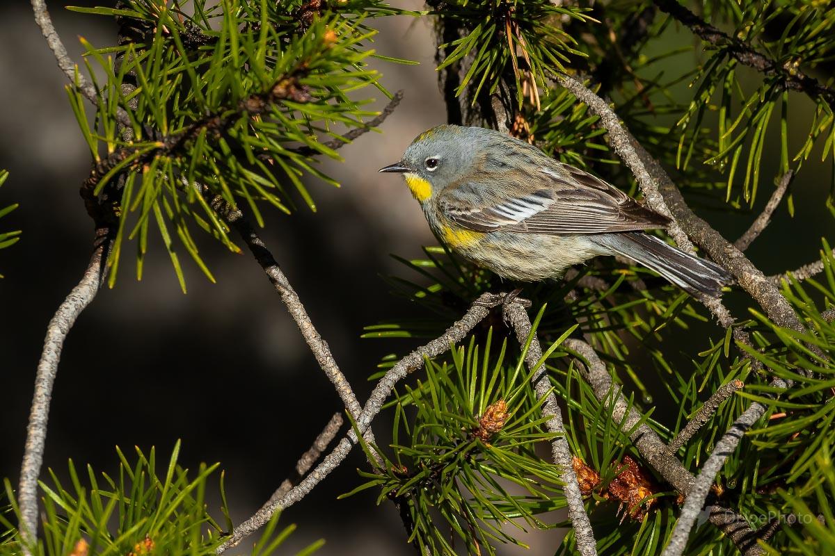 Back at the campsite, got a couple of shots of a female Yellow-rumped Warbler.